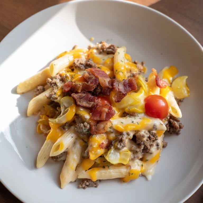 I first made this for a neighborhood dinner where everyone raved about how it tasted just like their favorite bacon cheeseburger, only much easier to serve a crowd. It's been a go-to comfort meal ever since, especially on chilly evenings.