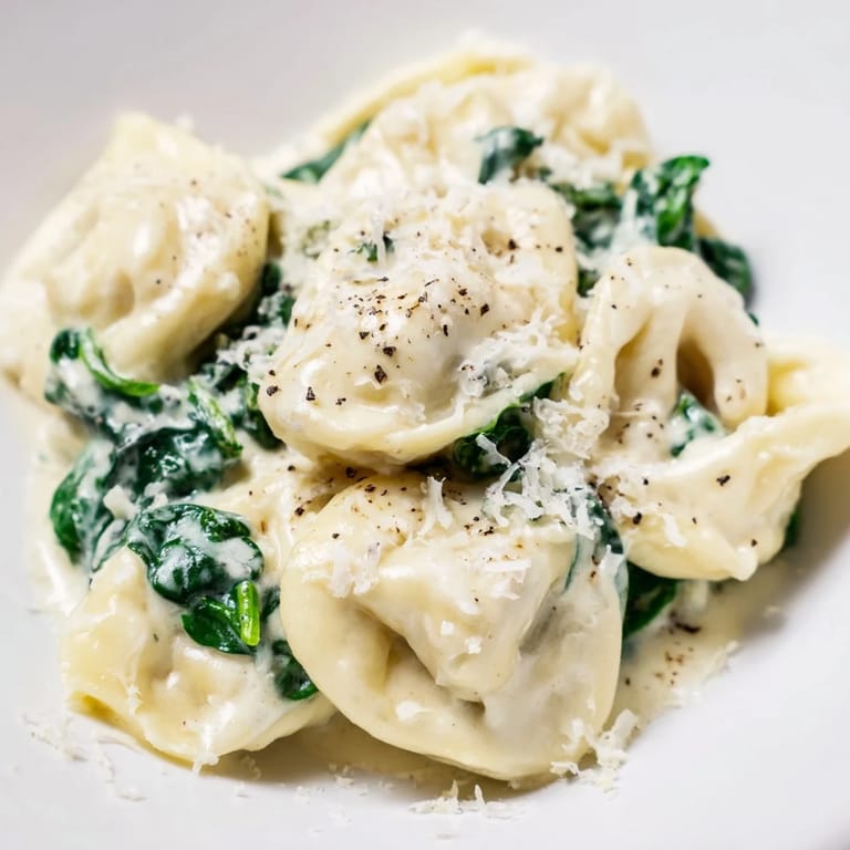 Save Tender cheese tortellini tossed in a rich, garlicky Alfredo sauce with fresh spinach for a comforting, restaurant-worthy pasta dish.