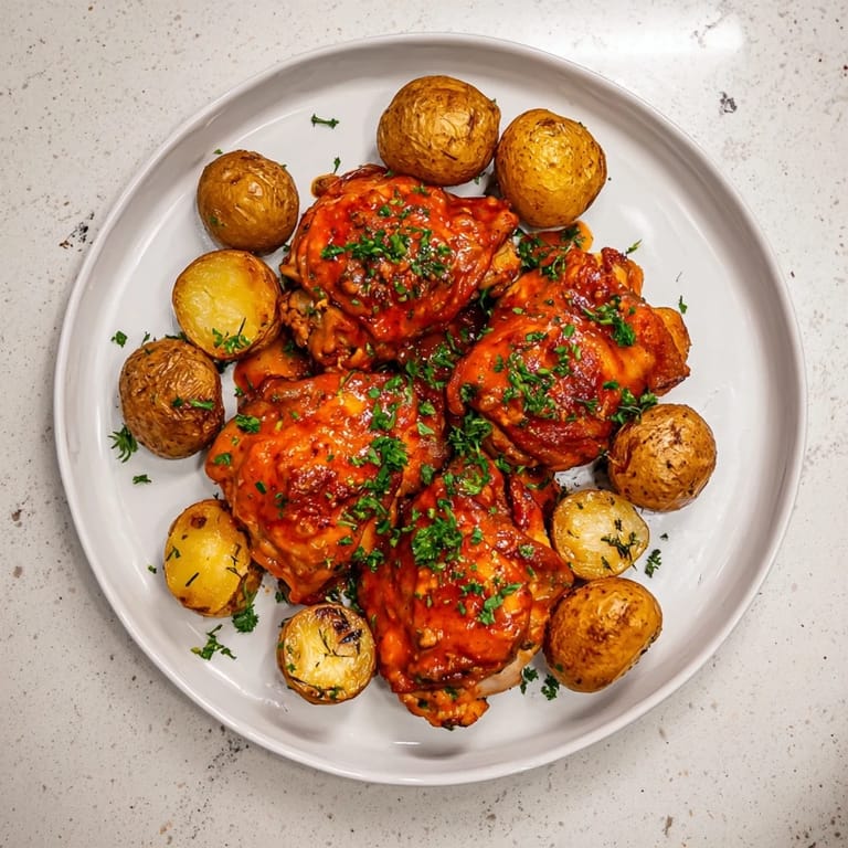 I first served this honey mustard chicken and roasted potatoes on a chilly evening, and it was a hit with everyone at the table. The aroma filled the kitchen and the sauce caramelizes perfectly, making each mouthful irresistible.