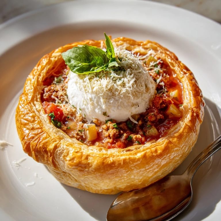 This dish was a fun weekend experiment after craving both lasagne and something cozy. Family and friends were instantly intrigued and delighted by the croissant bowl presentation, making it a new favorite for casual gatherings.