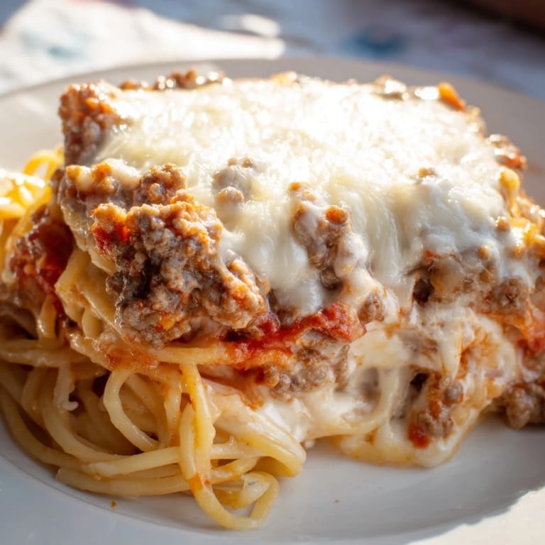 The genius of this dish is in its restraint pretending to be indulgence. You're layering three distinct textures and flavors—the herbed, beefy meat sauce; the cool, creamy ricotta and Alfredo layer; and the sharp, melted cheese on top—but they don't fight each other. Instead, they each shine while supporting the whole. The spaghetti acts like a sponge, soaking up flavors from both the meat sauce and the cream layer, so every bite tastes intentional.
