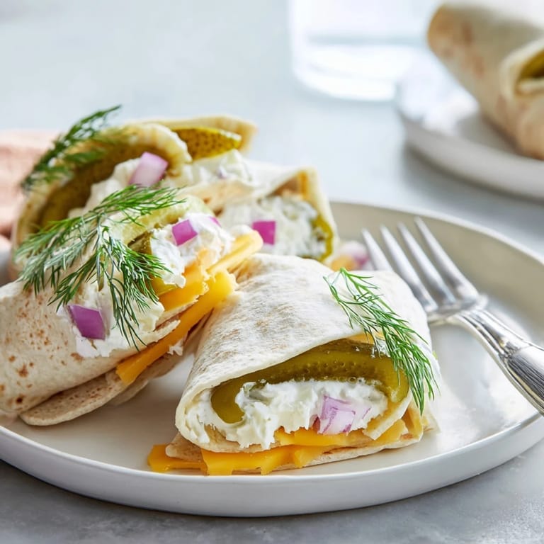 Save A fun, tangy snack featuring crisp pickles and creamy cheese, all wrapped in a soft tortilla – perfect for parties, picnics, or a quick bite.