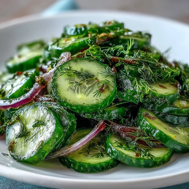 Save This Refreshing Crunchy Cucumber Salad is the perfect cooling side dish, combining thinly sliced cucumbers, red onion, and fresh herbs in a bright vinegar dressing. After a short chill in the fridge, every bite offers a crisp, tangy, and lightly sweet experience—a refreshing crunch that complements any meal.