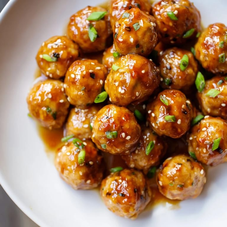 Save Juicy chicken meatballs coated in a sticky, sweet, and spicy honey glaze—perfect for appetizers or as a main course with rice or noodles.