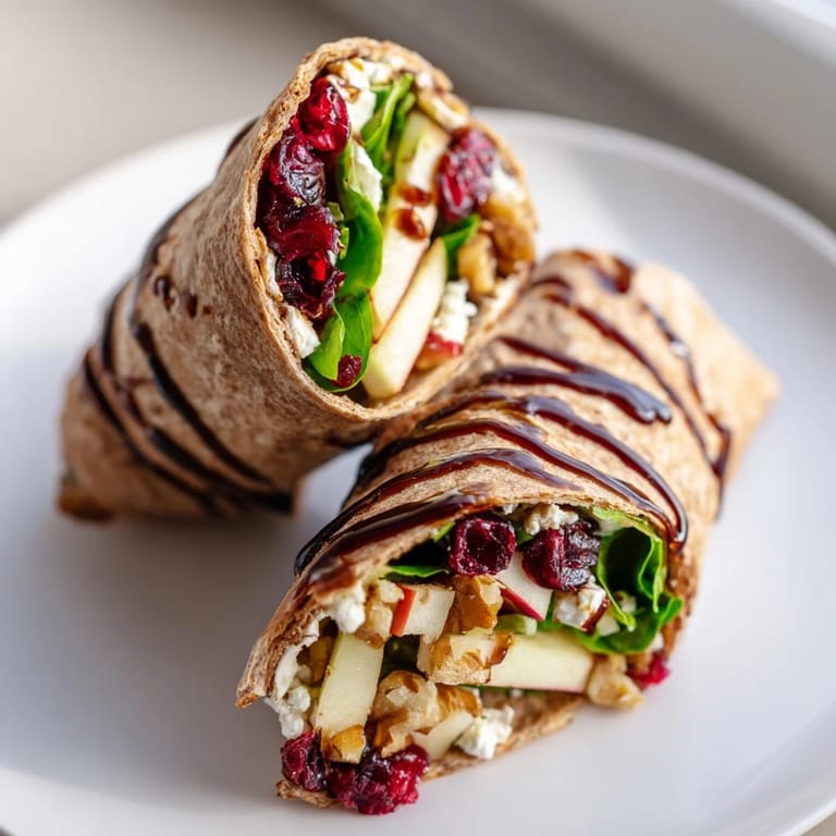 Save A festive, flavorful wrap featuring tangy goat cheese, sweet cranberries, and crunchy walnuts perfect for holiday gatherings or a cheerful lunch.