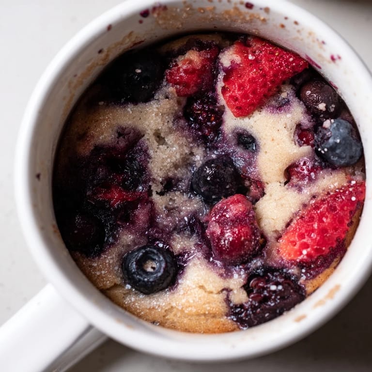 Save I was craving something sweet on a Tuesday night, staring into the fridge with no patience for the oven. A handful of berries sat in a container, and I thought, why not? Five minutes later, I had a bubbling, golden-topped cobbler steaming in a mug. The berries burst into syrup, the batter puffed up like a little cloud, and I ate it standing at the counter with a spoon. It felt like cheating, but in the best way.
