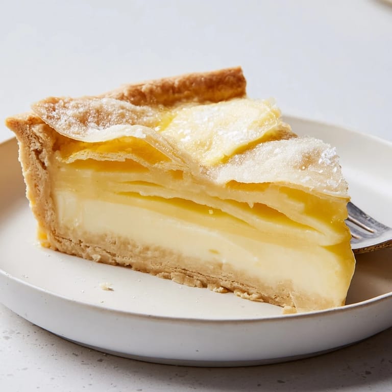Creamy custard pie with crisp crust and vanilla notes, made from simple pantry basics.